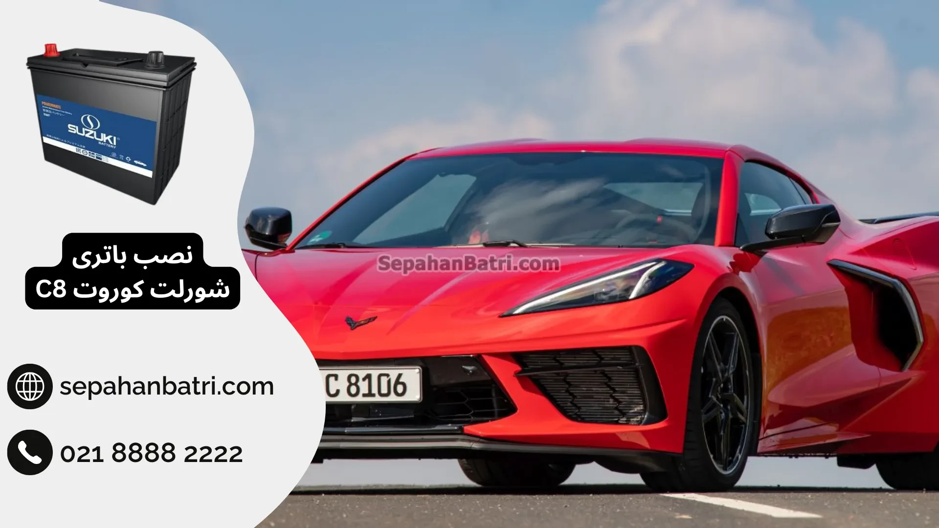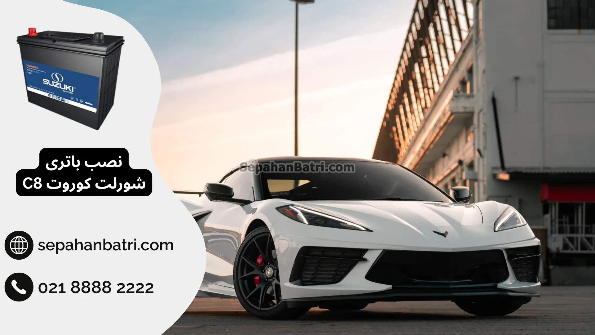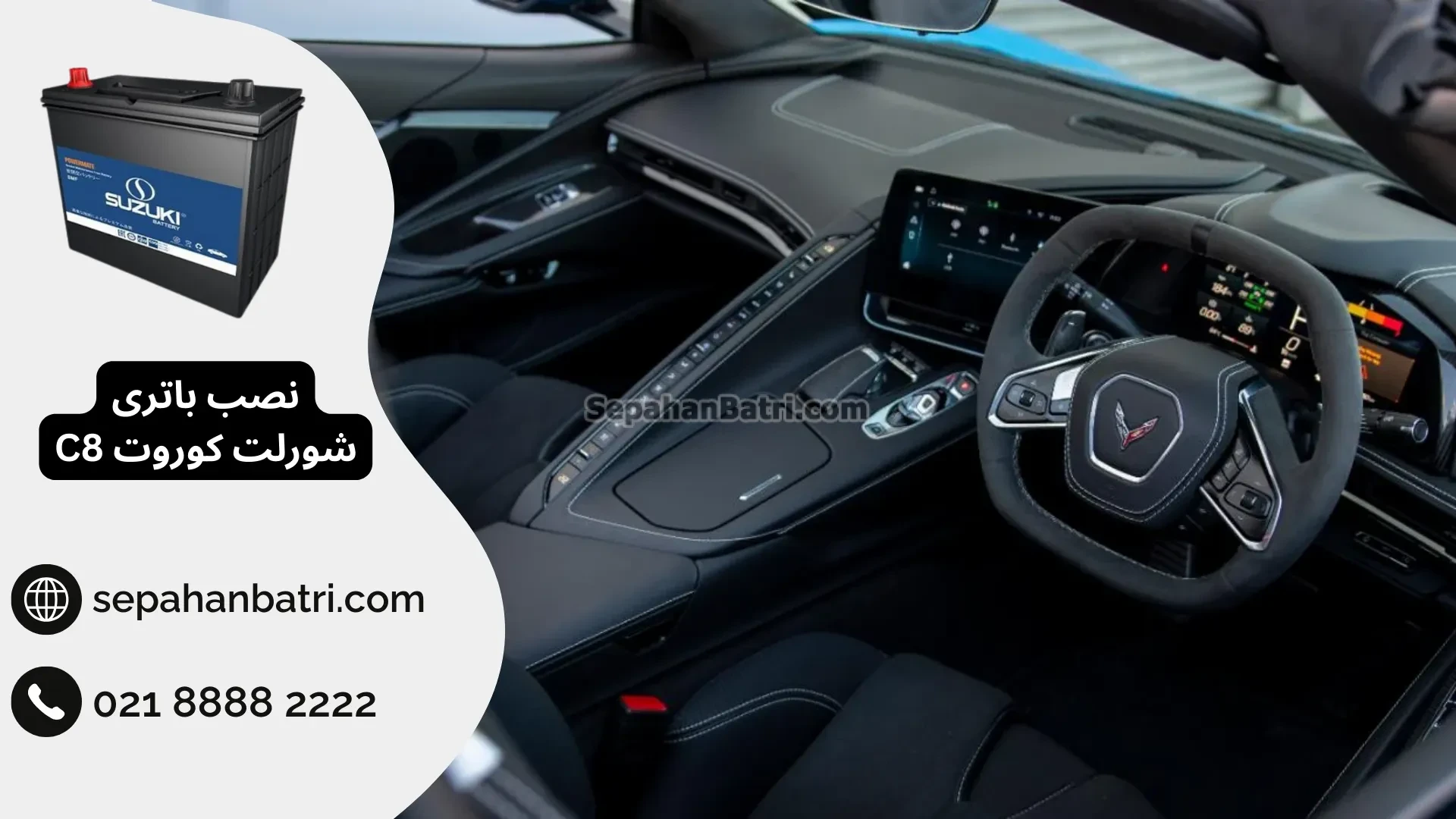 ارسال و نصب شبانه روزی باتری شورلت کوروت C8 در محل