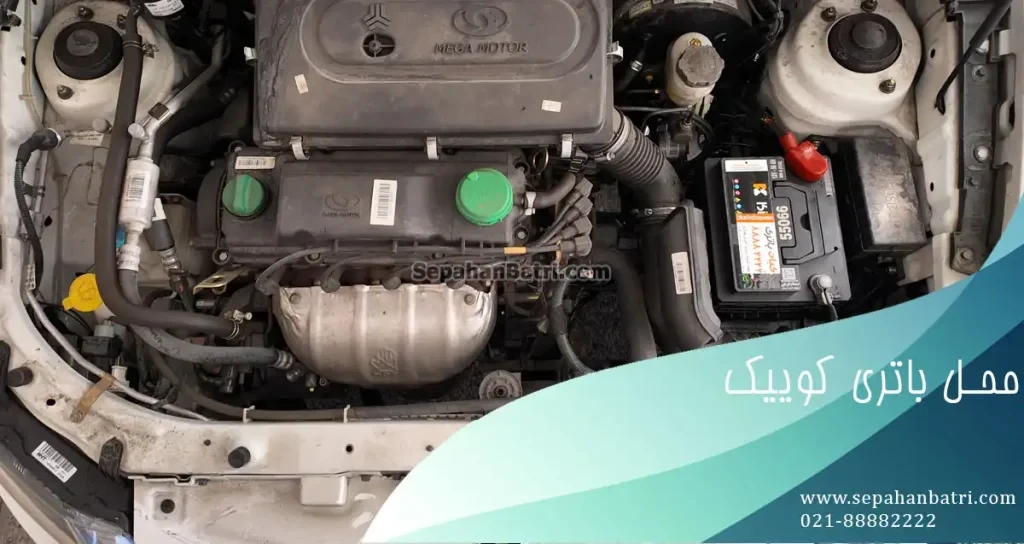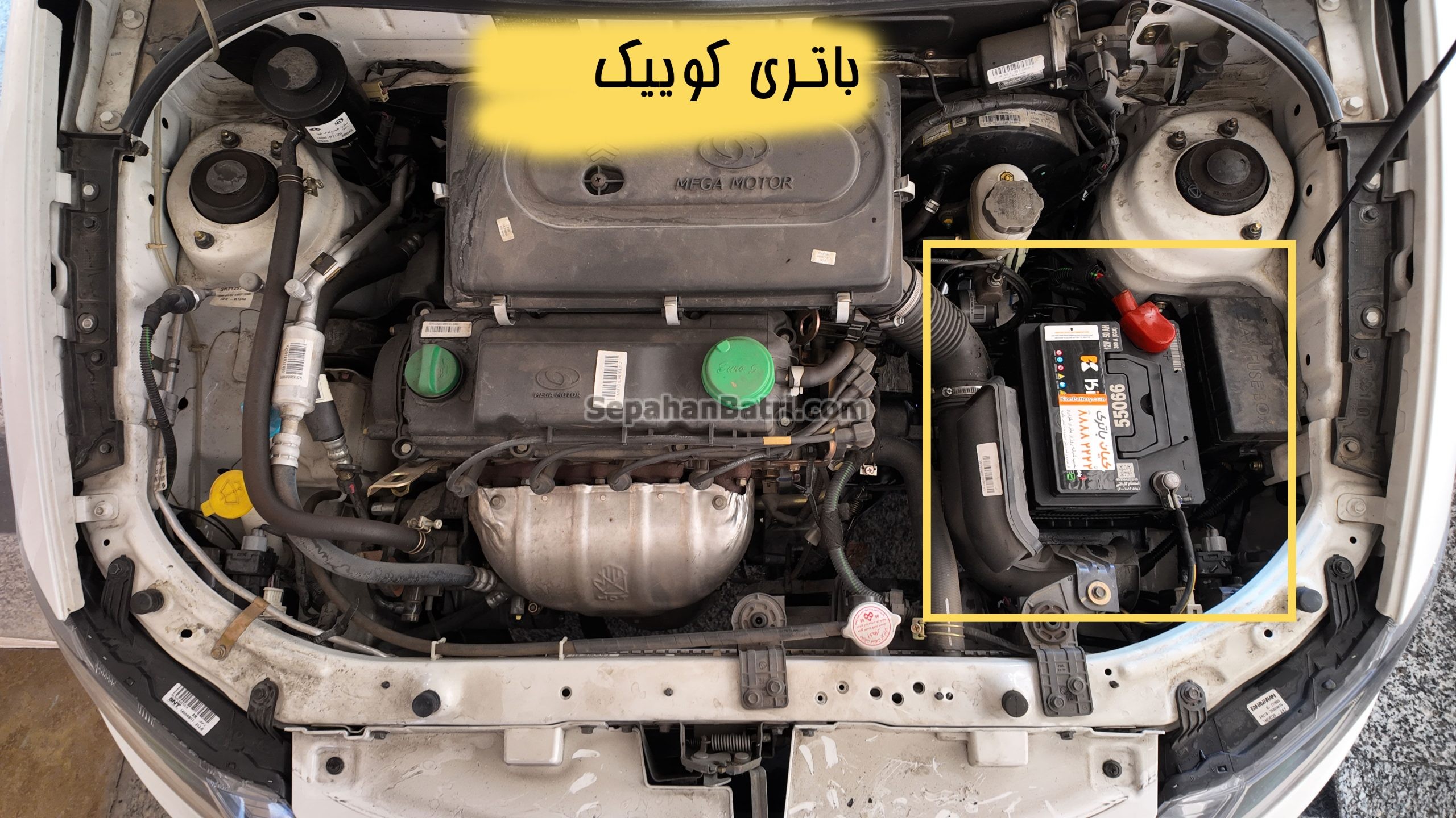 - محل نصب باتری: در کاپوت جلو، سمت راننده و پشت چراغ جلو قرار دارد.