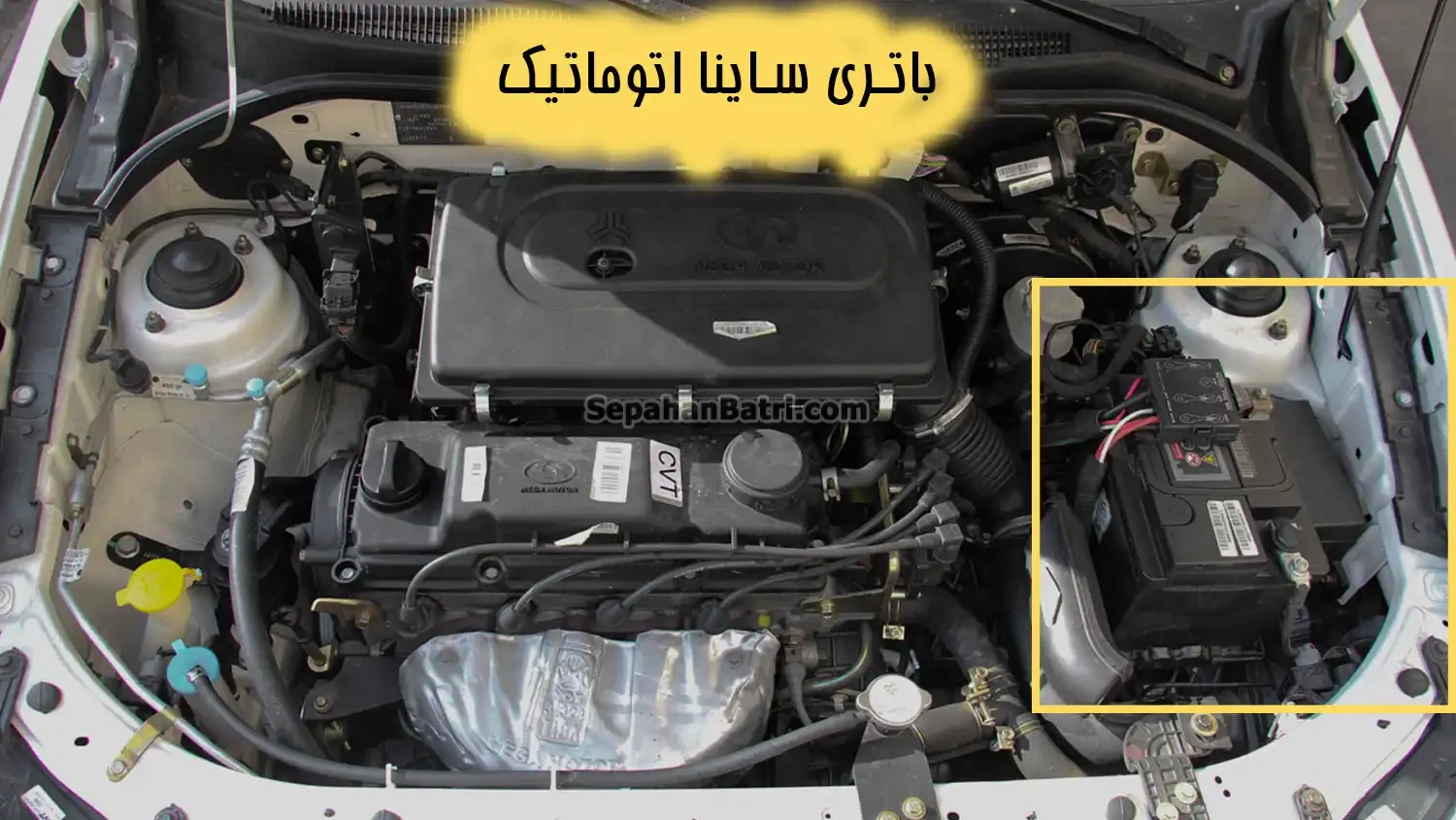 باتری ساینا اتومات در قسمت پیشرانه خودرو و در سمت راست موتور قرار دارد.